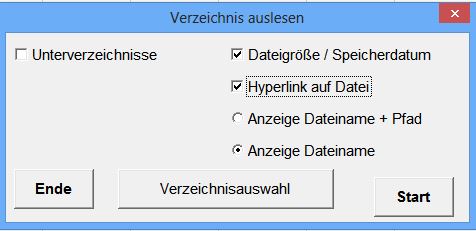 Für Versionen ab 2002. Auflisten aller Dateien eines Verzeichnisses. Folgende Optionen können ausgewählt werden:
